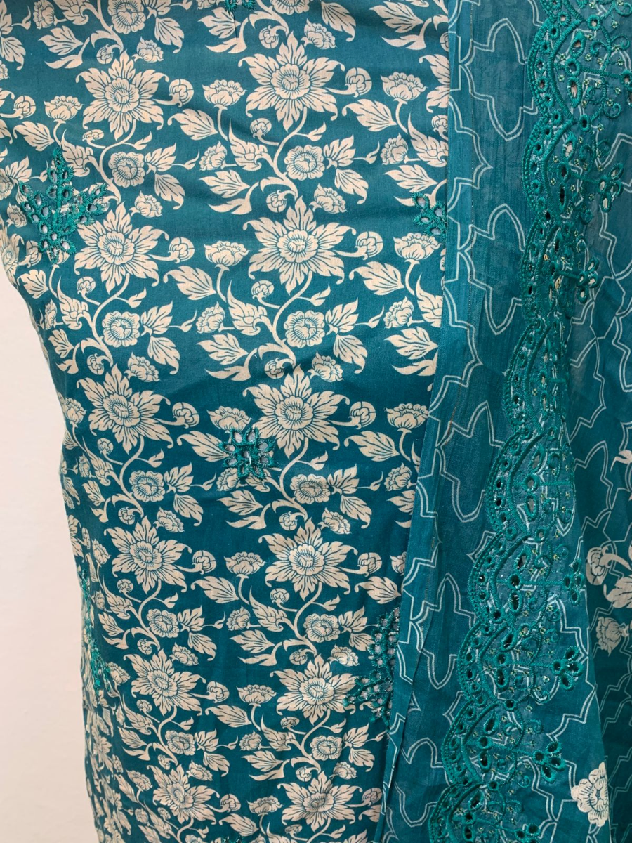 টিল ফ্লোরাল থ্রি পিস ড্রেস সেট